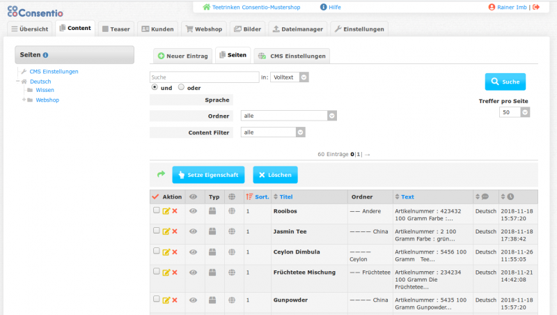 Sie finden hier einige Screenshots des Consentio Content Managements. Sollten Sie Consentio genauer unter die Lupe nehmen wollen, richten wir Ihnen gerne unverbindlich und kostenlos einen Test-Account ein.